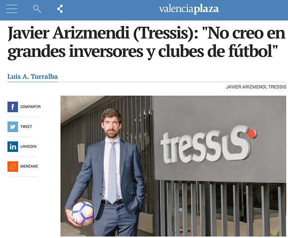 VALENCIA PLAZA: "No creo en el binomio grandes inversores y clubes de fútbol"
